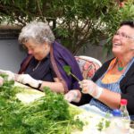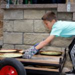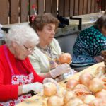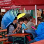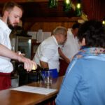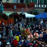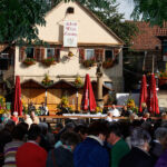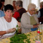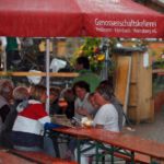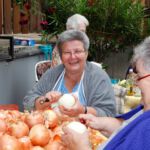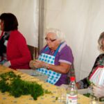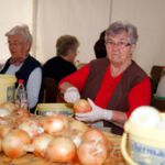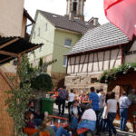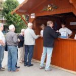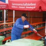 Die Ersten, die am Eröffnungstag, Freitag, 22. August, das Festgelände betreten, sind morgens die Frauen vom oberen und unteren Backhaus. Säcke voll Zwiebeln und Kisten mit Petersilie sind da noch reichlich vorhanden. Während die Weinfestfahne nach oben gezogen wird, befestigen und gießen einige Helfer noch schnell den herrlichen Blumenschmuck. Jetzt kann´s endlich losgehen.