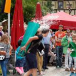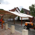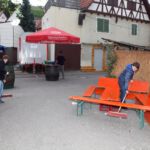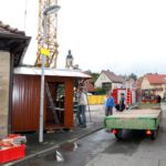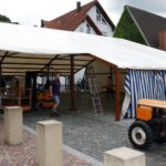 Mittwochs, in diesem Jahr der 20. August, ist für alle Bewirtschafter der Hauptaufbautag. Schon in den Vormittagsstunden waren Mitarbeiter der Gemeindeverwaltung unterwegs, um mit Absperrungen und Umleitungsschildern den Verkehr um die Ortsmitte zu leiten. Wenige Stunden später wurde dann im wahrsten Sinne des Wortes an allen Ecken und Enden intensiv geackert.