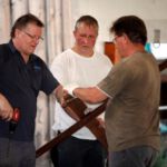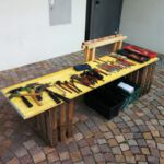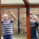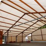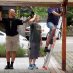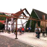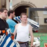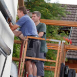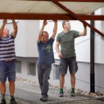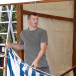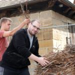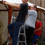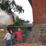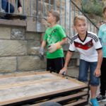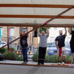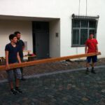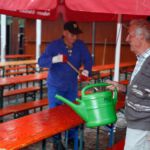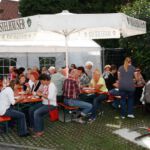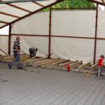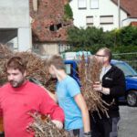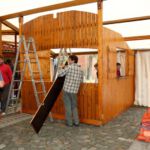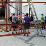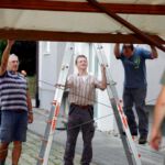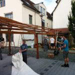Nach dem Motto: „zuerst die Arbeit, dann das Vergnügen“ beginnt das Ganze mit schweißtreibenden Tätigkeiten. Am Samstag, 9. August stand die Errichtung des Weinzeltes auf dem Aufbauplan.