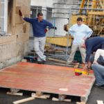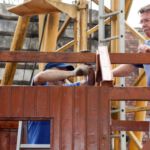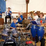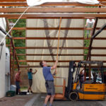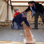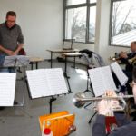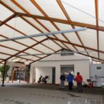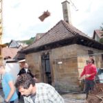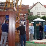 Drei Generationen vom Musik- und vom Sportverein Erlenbach bündelten ihre Kräfte, zogen, drückten, zerrten und schraubten an der Konstruktion und den Zeltplanen bis das Prachtwerk zentimetergenau stand. Dem Innenausbau steht nun in den nächsten Tagen nichts mehr im Wege.