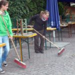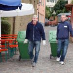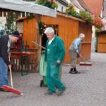 die für Sauberkeit nach einer feuchtfröhlichen Weinfestnacht sorgen. Nach getaner Arbeit haben sie sich redlich ein Vesper und ein Viertele Wein zur Morgenstunde verdient.