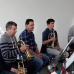 Der Musikverein Erlenbach gibt zusammen mit Bürgermeister Uwe Mosthaf und Klaus Varga vom Festverein Erlenbach am Kayberg offiziell den Startschuss. Für alle dabei Beteiligten beginnen nun
