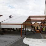 Sechs Tage vor der Weinfesteröffnung, am 16. August, ging es mit den Aufbauarbeiten für den Musikverein weiter. Gleich an mehreren Bereichen im Festgelände wurde gearbeitet. Im Weinzelt wurde die Bühne fachgerecht aufgebaut und der Weinausschank vorbereitet. Trotz Großbaustelle kann am