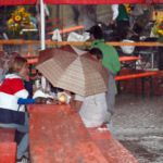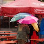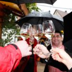 Bis in die Nachmittagsstunden war das Wetter bei den Backfrauen und auch bei den Besuchern kein Thema. Gegen später änderte sich das aber schlagartig. Die württembergische Weinkönigin kam schon mit Regenschirm und ihre Begrüßung musste kurzerhand ins Weinzelt verlegt werden. Gut beschirmt machte der anschließende königliche Rundgang durch die Pfützen und nassen Gassen aber dennoch allen Spaß.