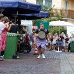 Doch davon ließen sich weder wir Musiker*innen noch unsere Zuhörer*innen beeindrucken. Eine erstaunliche Anzahl an erwartungsvollen Gesichtern hatte sich im und um das Zelt der Sparkassenbühne eingefunden, um uns und unserer Musik zu lauschen.