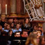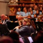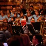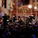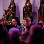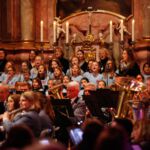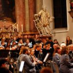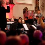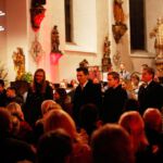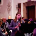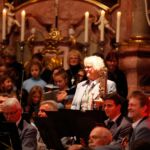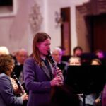 [`hiwae & `driwae] machten den gelungenen Anfang und verabschiedeten sich nach insgesamt drei Musikstücken mit „Feliz Navidad“. Mit der „Prozession der Ritter“ aus der Oper Mlada von Nikolai Rimsky-Korsakow übernahm das aktive Blasorchester. Als Höhepunkt des Konzertes gilt sicherlich das Klarinetten-Solo von Anna Geiger, die ihr Können im Adagio aus dem Klarinettenkonzert A-Dur KV 622 von Wolfgang Amadeus Mozart eindrucksvoll präsentierte. Als weiteres „Highlight“ gilt wohl das Werk „Celtic child“ von Bert Appermont, welches bereits in unserem Frühjahrskonzert Teil des Programmes war. Diesmal unterstützt von dem Schülerchor, der Unterstützung einiger Erlenbacher Sängerinnen und dem Solo-Gesang von Frau Julia Römer zeigte das Stück mit der Akustik der Kirche seine ganz eigene Wirkung und das Publikum war begeistert. Spätestens nach „Süßer die Glocken nie klingen“ und dem von allen gemeinsam gesungenen „O du fröhliche“ herrschte vorweihnachtliche Stimmung und das Publikum dankte allen Mitwirkenden mit „Standing Ovations“.