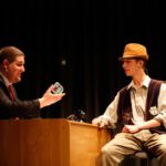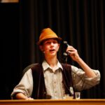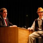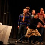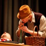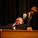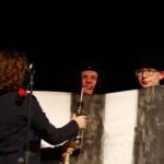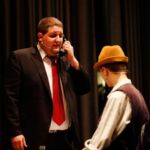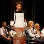 An dieser Stelle endete die Einweihung des neuen Musikhauses für „den Bürgermeister“ im Alkohol-Rausch und so berichtete im zweiten Teil der Winterfeier „Hardle“ seinem Chef vom weiteren Verlauf der Veranstaltung. Im Raum der visuellen Klänge wurden die einzelnen Register des Musikvereins bildlich vorgestellt. Hanna May lies ihre Kandidaten im aktiven Raum Instrumente am Klang erraten. Das „lebende Klavier“, etwas in die Jahre gekommen und verstimmt, wurde von der Musikhausleiterin Julia Lang vorgestellt. Im letzten Zimmer, dem „Raum des Wissens“, stellten sich drei Teams bei „Eins, zwei oder drei“ mit der charmanten Showmasterin Sandra Schadt gleich mehreren lustigen Aufgaben.